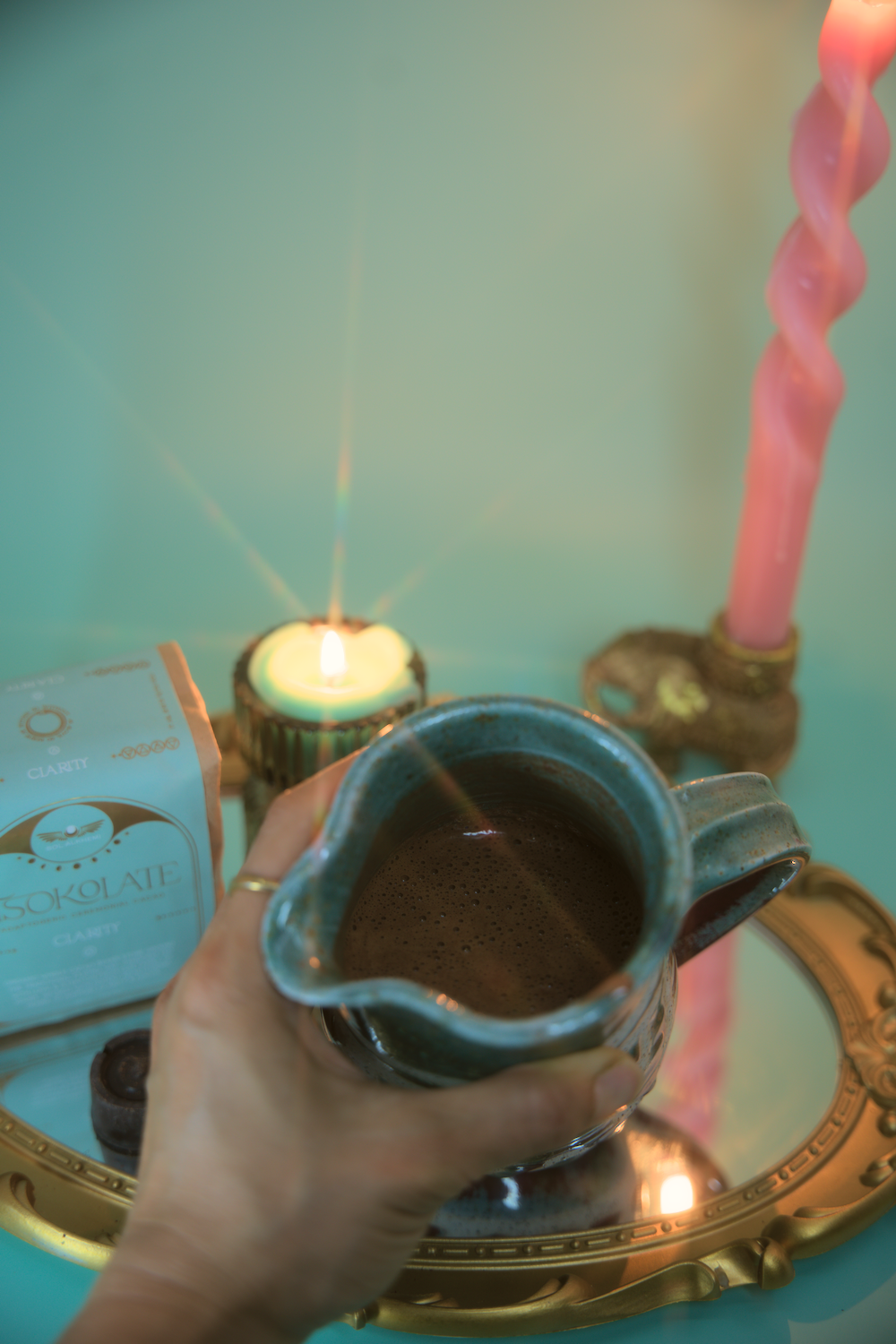 Sip your Tsokolate Clarity slowly. Take one piece of the chocolate of your choice with intention. Let the body register the commitment you are making.