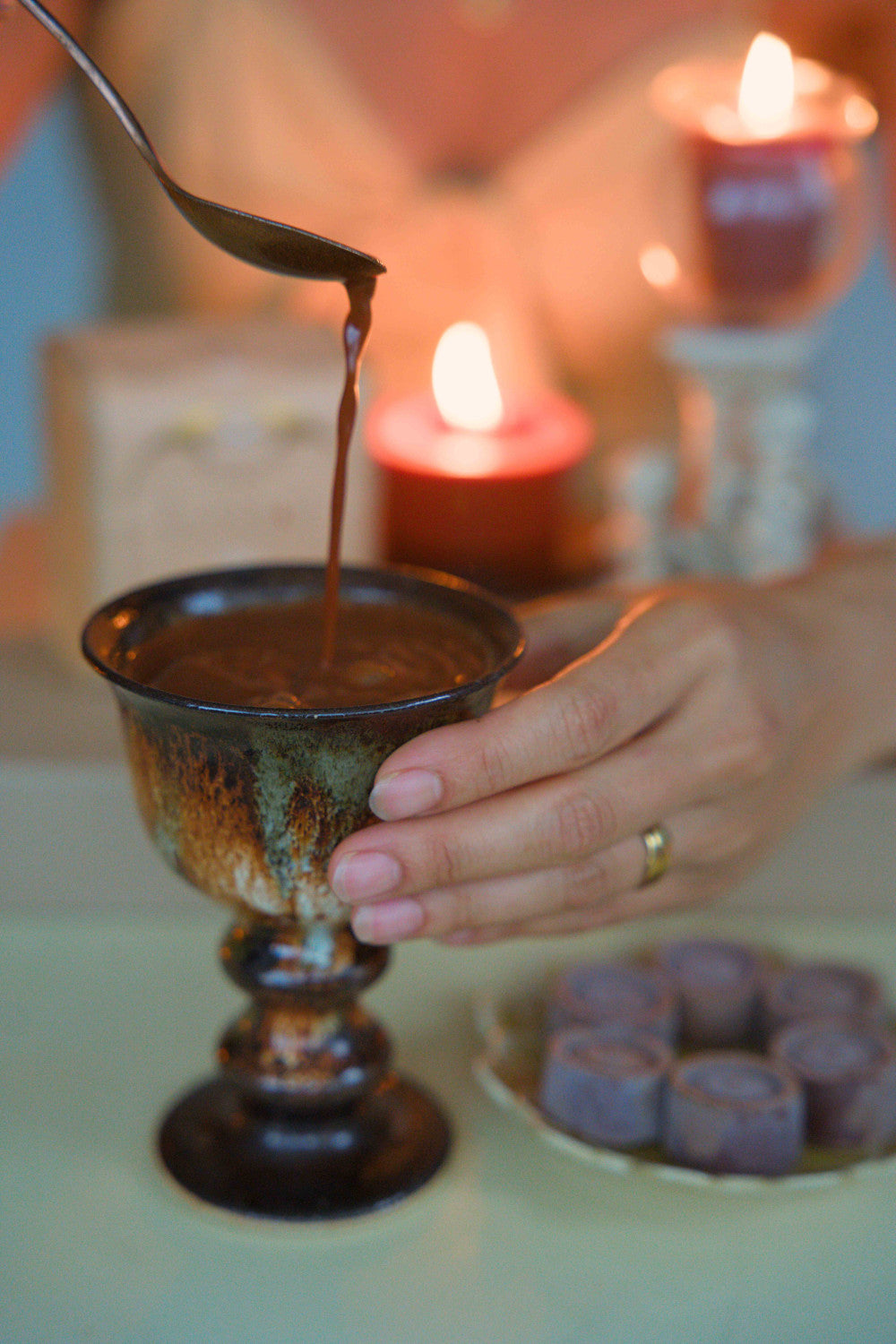 We also advise that you gradually work your way up to anything beyond 44 grams of cacao over a few days and that you do not exceed more than 85 g in total per day. Only those with an established practice and who respond well to cacao should partake in ceremonial dosing.